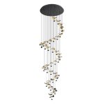 LED svetlo DRACERA je vyrobené z čierneho kovu s rôznymi prvkami zlatej farby, ktoré pripomínajú listy. Závesné LED diódy sú umiestnené na konci káblov rôznych dĺžok a svietia nahor. Integrované LED diódy poskytujú príjemné teplé biele svetlo a vďaka kvalitným listom zlatej farby zaisťujú elegantný lesk. Listy inšpirované jeseňou vyzerajú, akoby padali na zem. Svetlo je možné stmievať aj pomocou vhodného otočného stmievača na stene. Závesné svietidlo so svojím priemerom 78 cm elegantne zapadne do moderného štýlu bývania a ponúka atmosférické osvetlenie každej miestnosti – či už v obývačke, jedálni alebo spálni.
